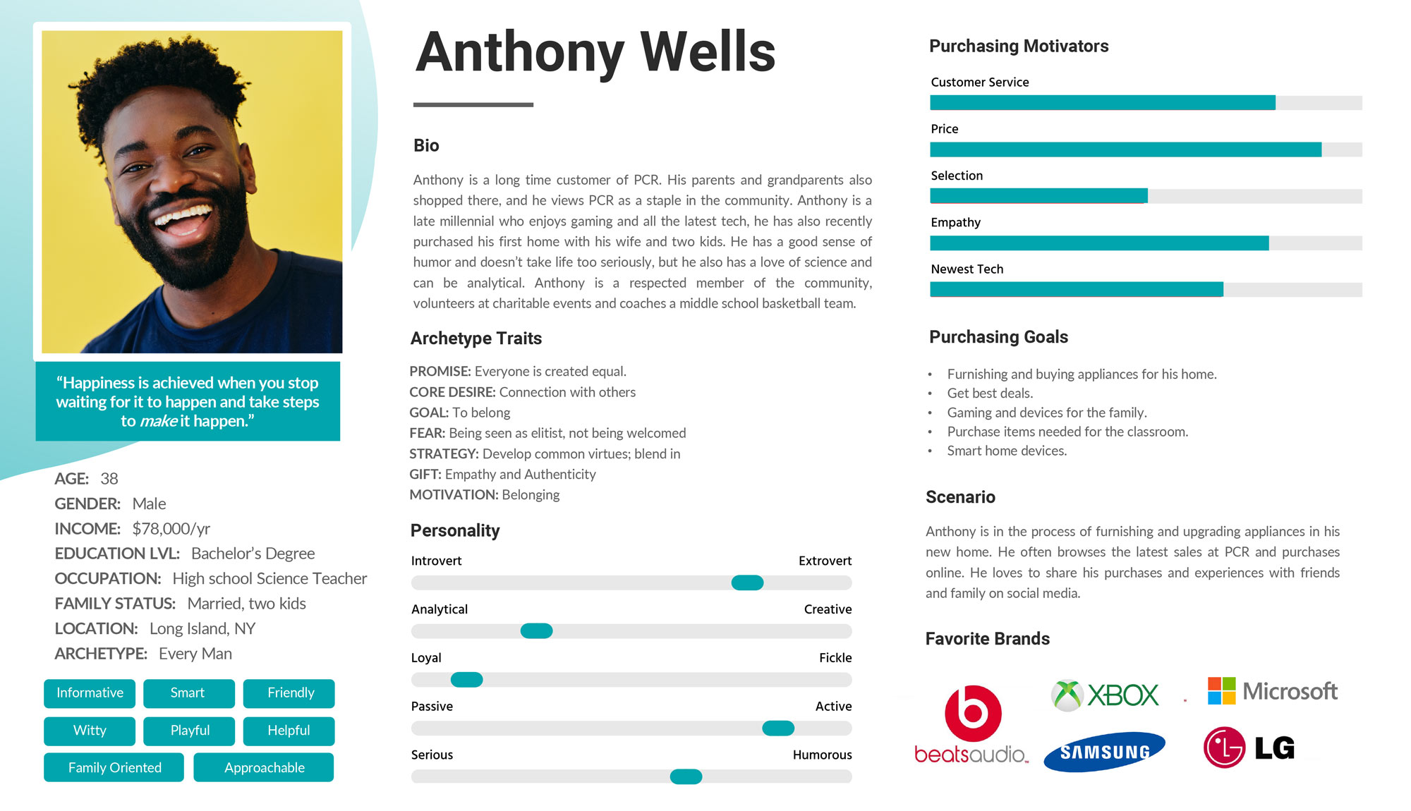 We provided P.C. Richard & Son with a customer service training document explaining how to use the new voice and tone in all channels of communication. We provided recommendations for responding to negative feedback and processes for customer outreach while maintaining a consistent voice. Social media content was revamped to include new assets that were in line with the updated voice, which resulted in an increase in followers and engagements. Future plans include adding additional social platforms and filming commercials featuring the actor shown in the persona document as the face of P.C. Richard & Son.